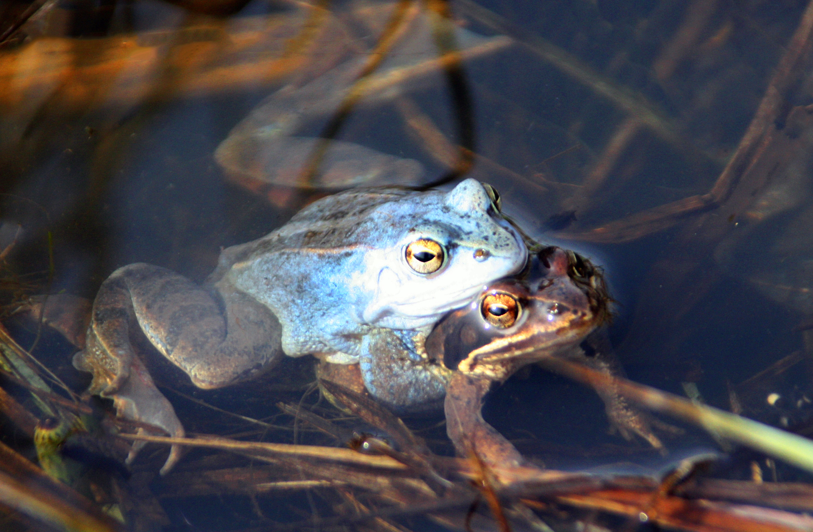 - Während der Paarungszeit färben sich die männlichen Frösche blau